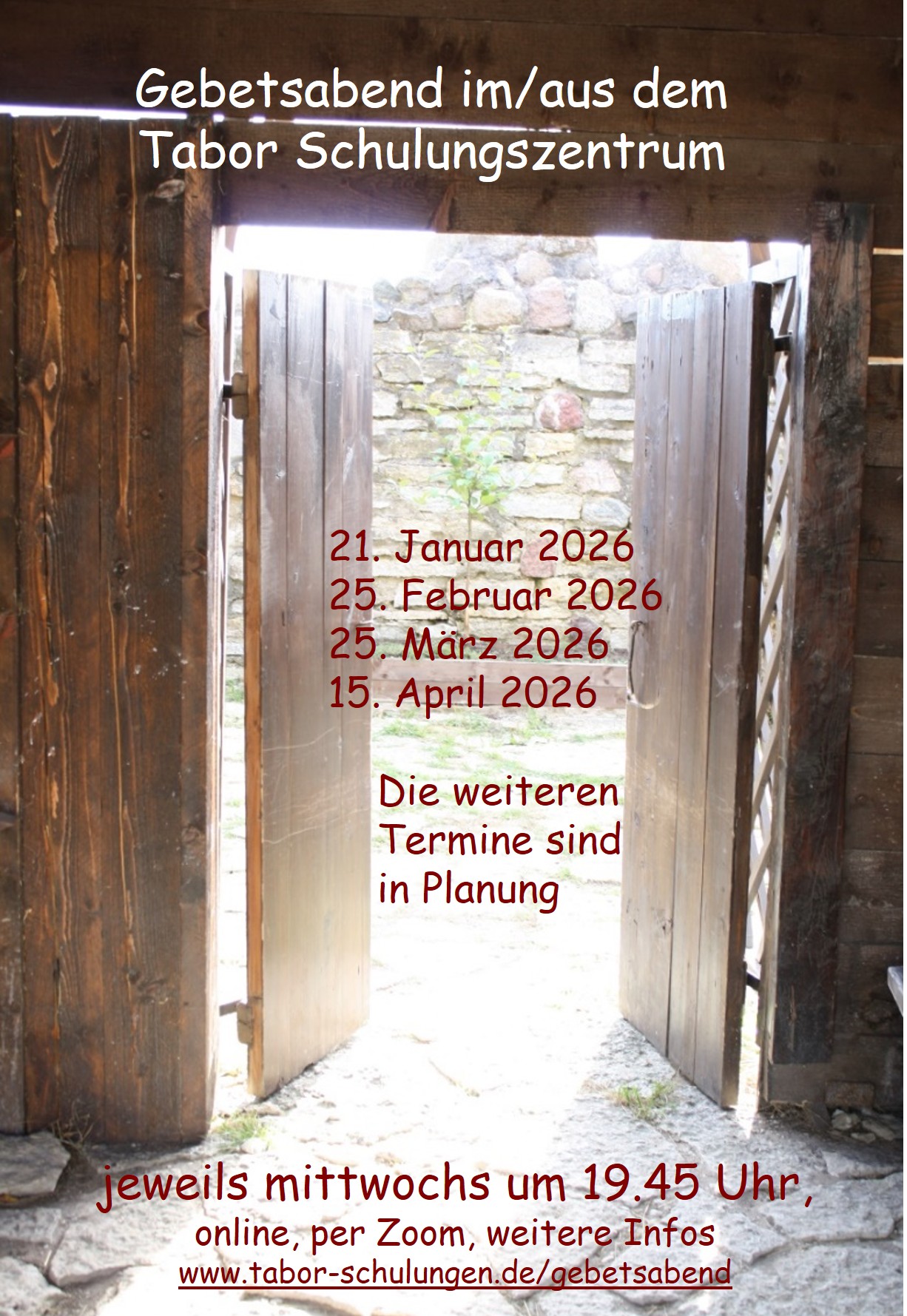 Zeitnah zum Gebetsabend verschicken wir die den Zoom-Link.